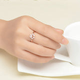 A: High-quality 925 Sterling Silver, x5 18k Rose Gold Plated, Rose Quartz Crystal Gemstone handpicked and imported from Madagascar. It undergoes a 360° grinding and polishing process that ends with a mirror shine finish.